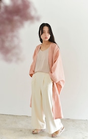 リネン長羽織 03 - 桃鴇 -(コーラルピンク)
